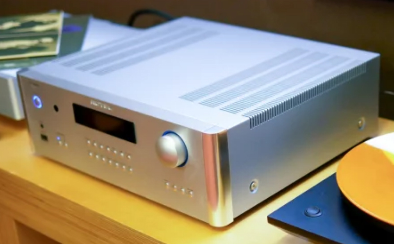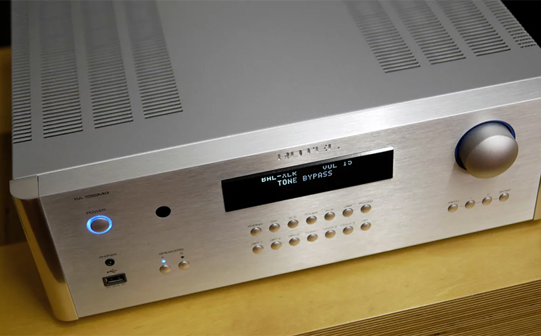 扬声器 A 和 B 有两对 5 路扬声器接线柱,以及一个耳机放大器,其 3.5 毫米插孔位于本机的前面板上。老式但有用的功能的粉丝会喜欢包含可旁路的音调(低音和高音)和平衡控制,它们可以从前面板菜单和附带的遥控器访问。铝制前面板包含许多用于电源、扬声器选择、信号源选择和菜单命令的按钮、一个用于从 iOS 设备(iPhone、iPad 和 iPod)播放音乐的 USB-A 输入、上述 3.5 毫米耳机插孔、一个音量旋钮和显示屏。