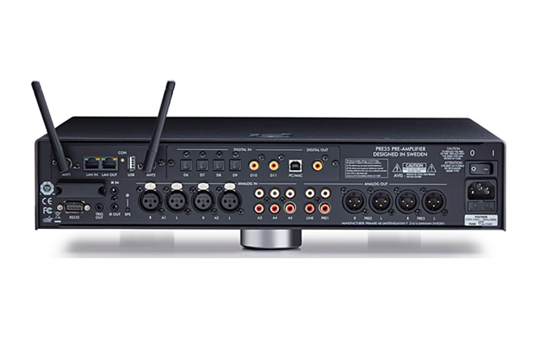那些选择更传统源选项的人会很高兴看到后面板塞满了插座。有双模拟 XLR 输入和输出、三对 RCA 输入、四个 Toslink 光纤数字输入和两个同轴数字输入,以及一个 USB 输入。这些馈入一个复杂的 AK4497 DAC,工作在高达 768kHz/32 位 PCM 和 DSD256 分辨率。固定和可变模拟输出、同轴数字输出和红外输入/输出以及一个 RS232 服务端口完善了画面。