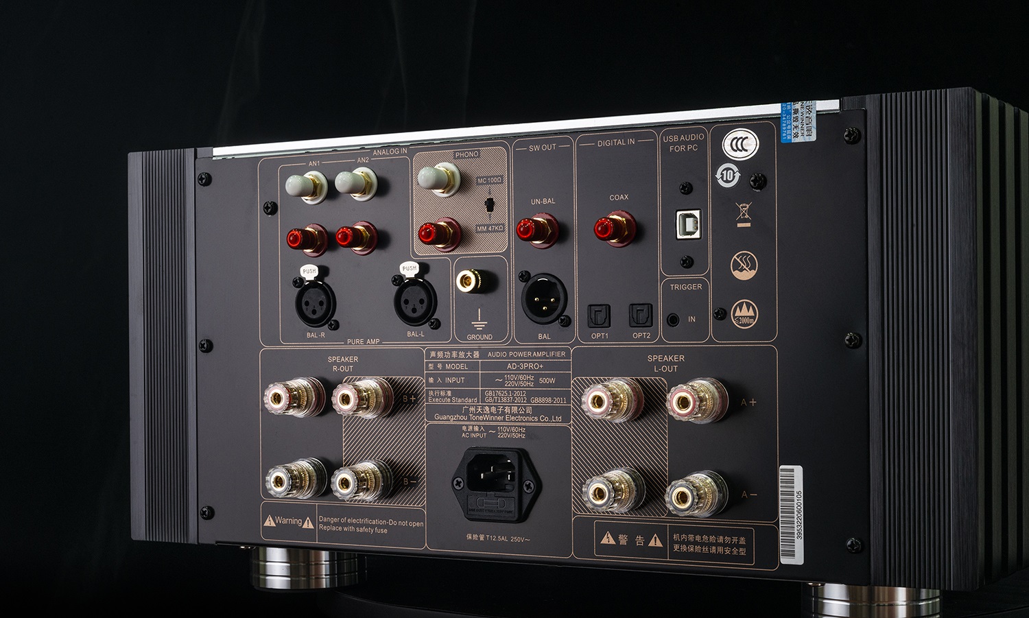 AD-3PRO+是以上代产品和旗舰级解码合并功放AD2 Pro为蓝本研发打造,最明显的提升是增加USB Audio For PC 接口配以顶级解码芯片,PC-HiFi发烧友通过AD-3PRO+可享受最高DSD512、PCM 768KHz/32bit的极品数字音乐。同时优化内部电路,输出功率提升至每声道8欧下165W,赋予它更强的驱动力和瞬态控制能力。天逸AD-3PRO+有望成为此价位段最具竞争力的解码合并式功放产品之一。