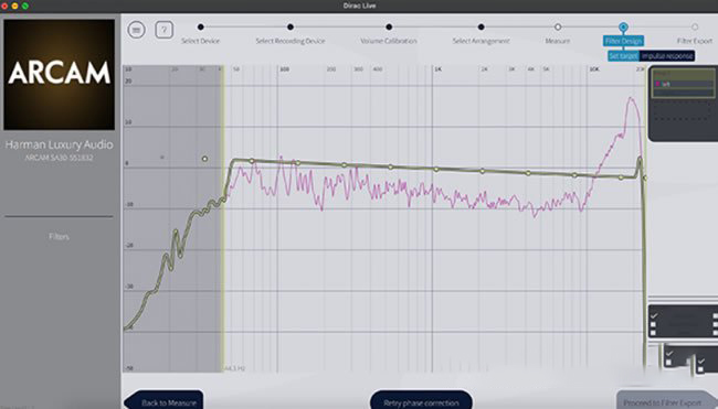 此外,Dirac Research 还配备了 Dirac Live,这是一种室内声场校正技术,结合了脉冲响应和频率特性的校正。 使用套件随附的专用麦克风和 PC 进行多个测量,并在云中执行高级计算。 结果通过网络发送到 SA30 以反映校正。 特别是在家庭影院应用中,当电视位于扬声器中心时,反射的影响会很大,但 Dirac Live 应该能够弥补其缺点。