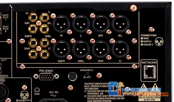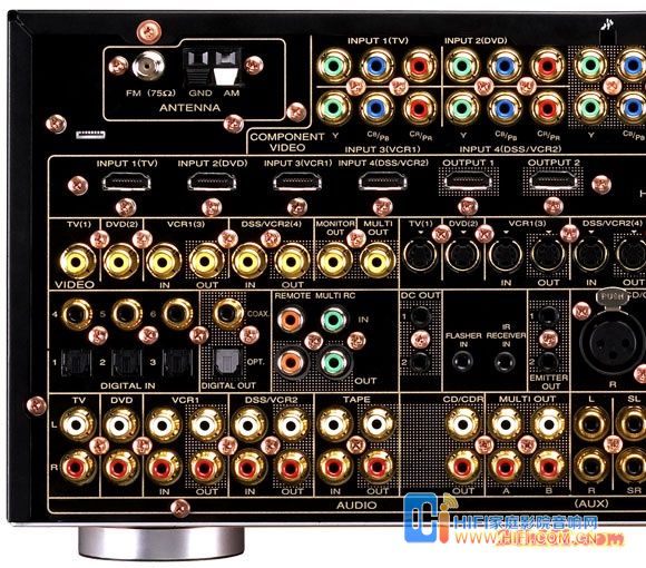 放大器电路采用了电力增幅放大器构成,使放大器的驱动力更加强大,控制力更好,提供140W x 8ch (8 ohms)、220 Wx 8ch(6Ω)的真实功率输出。功率放大部分应用了独家专利的“电流反馈”技术,令其扩音功能可以轻松推动低抗阻的喇叭,对于回放SACD及DVD-Audio、BD蓝光盘的高清环绕格式等的音质有极大的帮助,完全驾驭宽频纯音乐及高清影音等讯源的高音质表现。