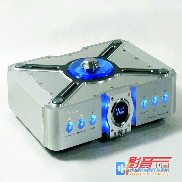 在造型上与A500配套的CD500 CD机,使用山灵特别开发的CDM1230拾音伺服系统,搭载日本NPC SM5847超取样滤波芯片、BB SRC4193( 44.1KHz/192kHz )升频芯片,4片PCM1704K芯片作真正平衡D/A转换,输出级以2支EH6922真空管作仿真平衡输出。内部使用2只R型电源变压器,数模独立分开供电。全铝机身加上多重防震,先不管它的技术参数如何,也不谈重达16公斤的结实机箱,很多人光是操纵由压克力制作的顶盖,看到它散发出神秘的蓝光,脑子就已经不听话的投降了。
